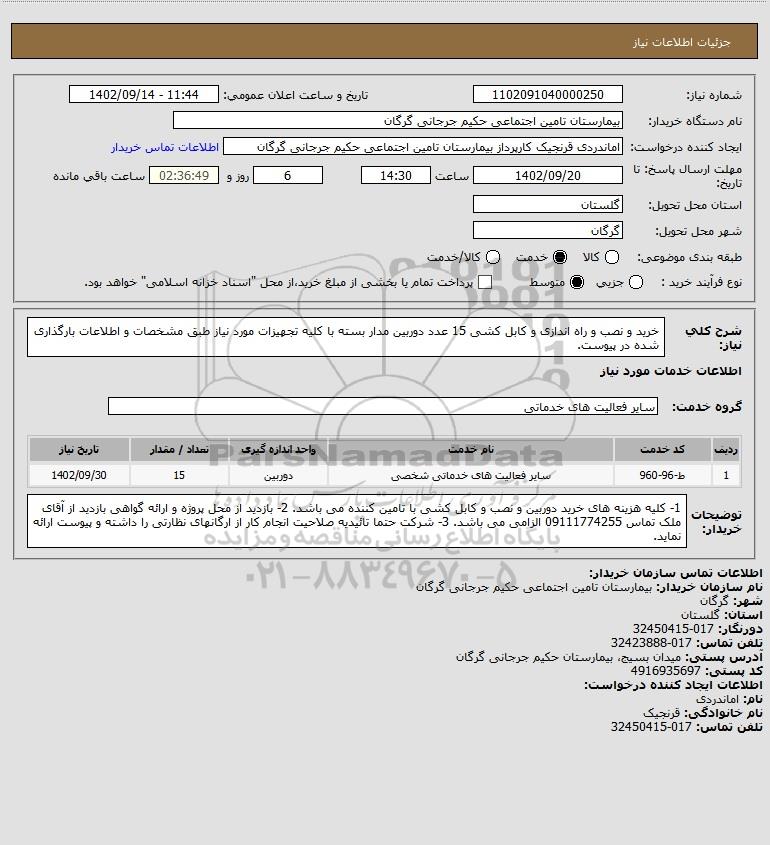 نام دستگاه خریدار:بیمارستان تامین اجتماعی حکیم جرجانی گرگان