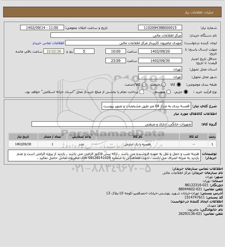 نام دستگاه خریدار:مرکز اطلاعات مالی