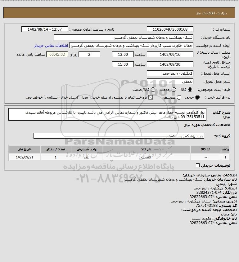 نام دستگاه خریدار:شبکه بهداشت و درمان شهرستان بهمئی گرمسیر