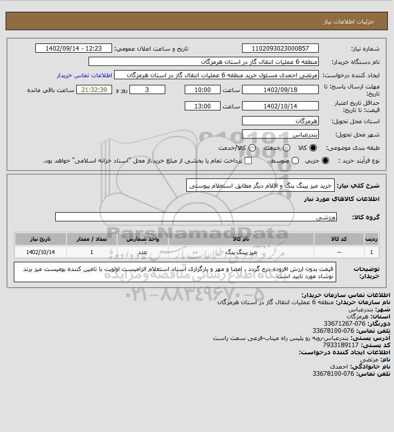 شرح کلی نیاز: خرید میز پینگ پنگ و اقلام دیگر مطابق استعلام پیوستی