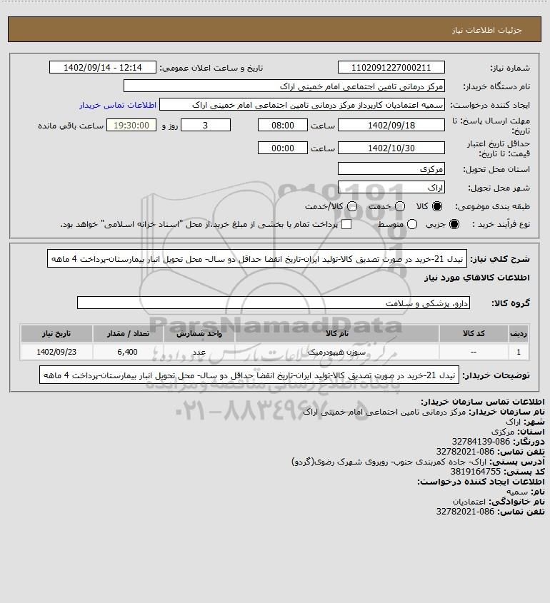 نام دستگاه خریدار:مرکز درمانی تامین اجتماعی امام خمینی اراک