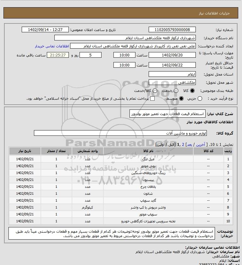| 2 | -- | بوش موتور | عدد | 1 | 1402/09/21 |