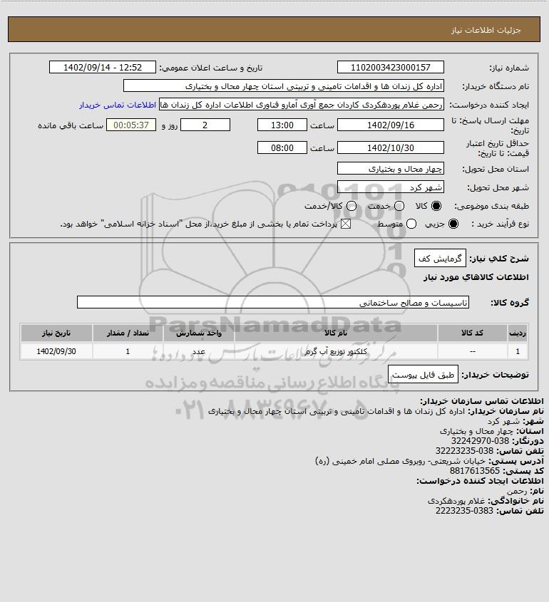 نام دستگاه خریدار:اداره کل زندان ها و اقدامات تامینی و تربیتی استان چهار محال و بختیاری