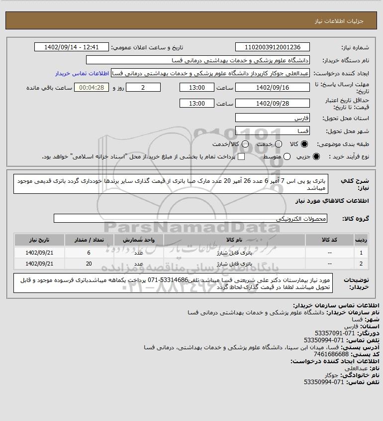 | 2 | -- | باتری قابل شارژ | عدد | 20 | 1402/09/21 |