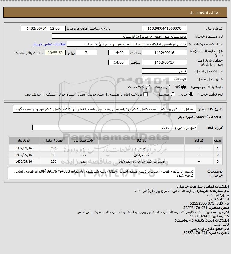 نام دستگاه خریدار:بیمارستان علی اصغر ع بیرم (ج) لارستان