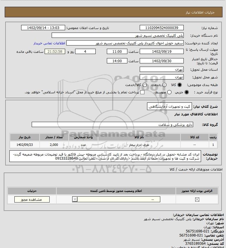 | 1 | -- | ظرف ادرار بیمار | عدد | 2,000 | 1402/09/23 |