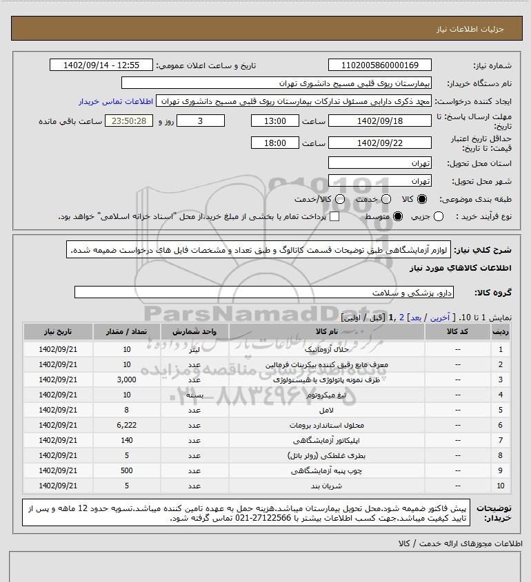 شرح کلی نیاز: لوازم آزمایشگاهی طبق توضیحات قسمت کاتالوگ و طبق تعداد و مشخصات فایل های درخواست ضمیمه شده.