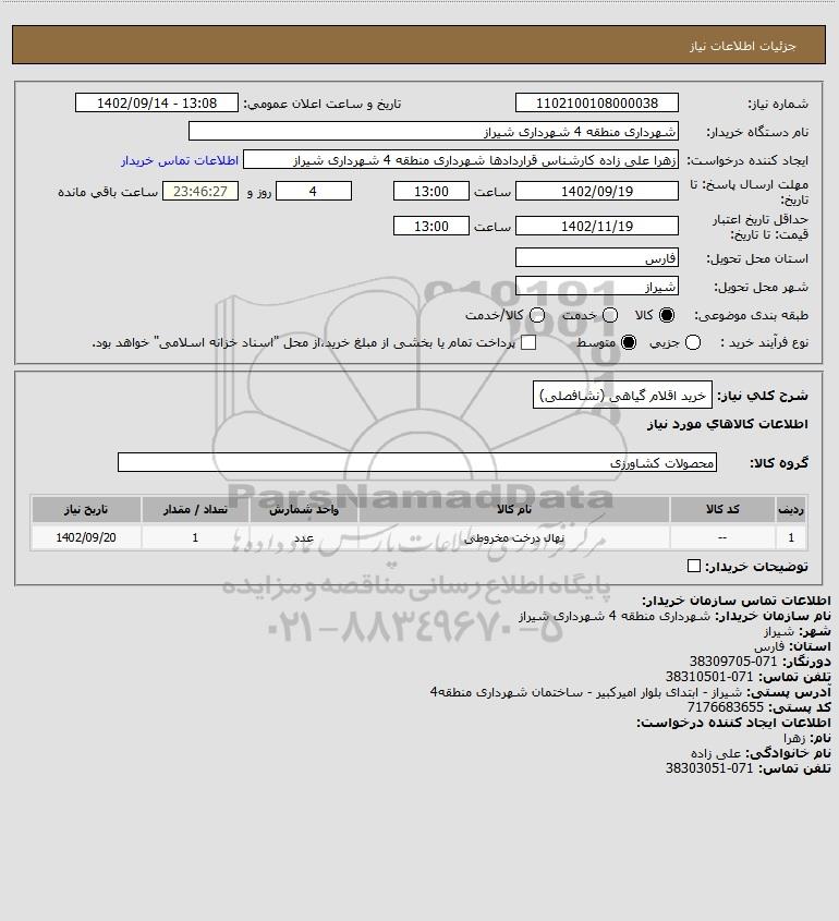 نام سازمان خریدار: شهرداری منطقه 4 شهرداری شیراز