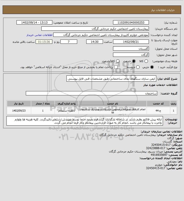 نام دستگاه خریدار:بیمارستان تامین اجتماعی حکیم جرجانی گرگان