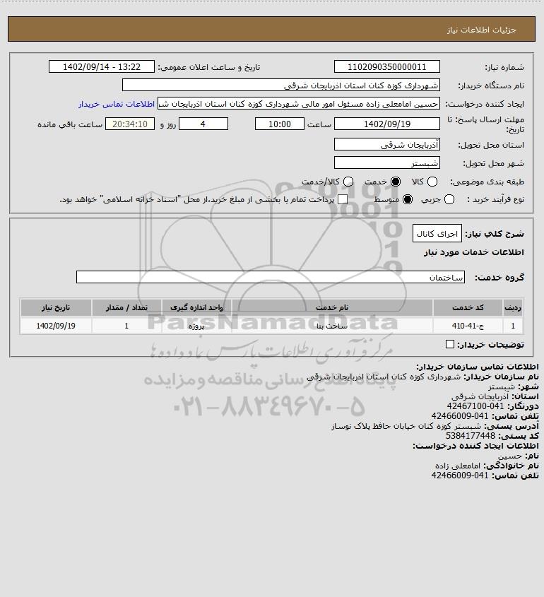 نام سازمان خریدار: شهرداری کوزه کنان استان اذربایجان شرقی