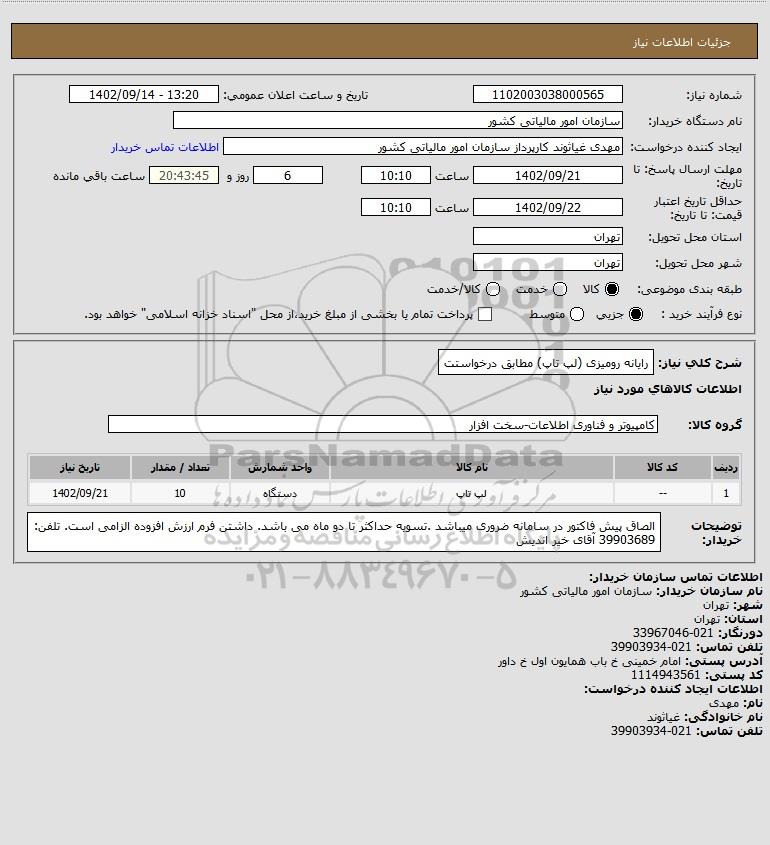 نام دستگاه خریدار:سازمان امور مالیاتی کشور