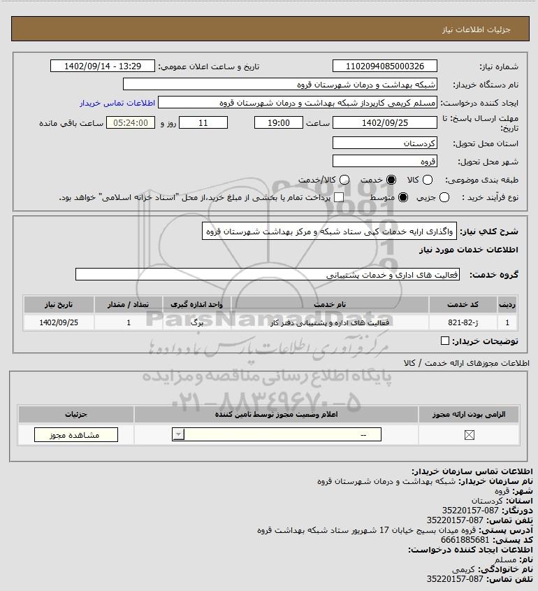 نام دستگاه خریدار:شبکه بهداشت و درمان شهرستان قروه