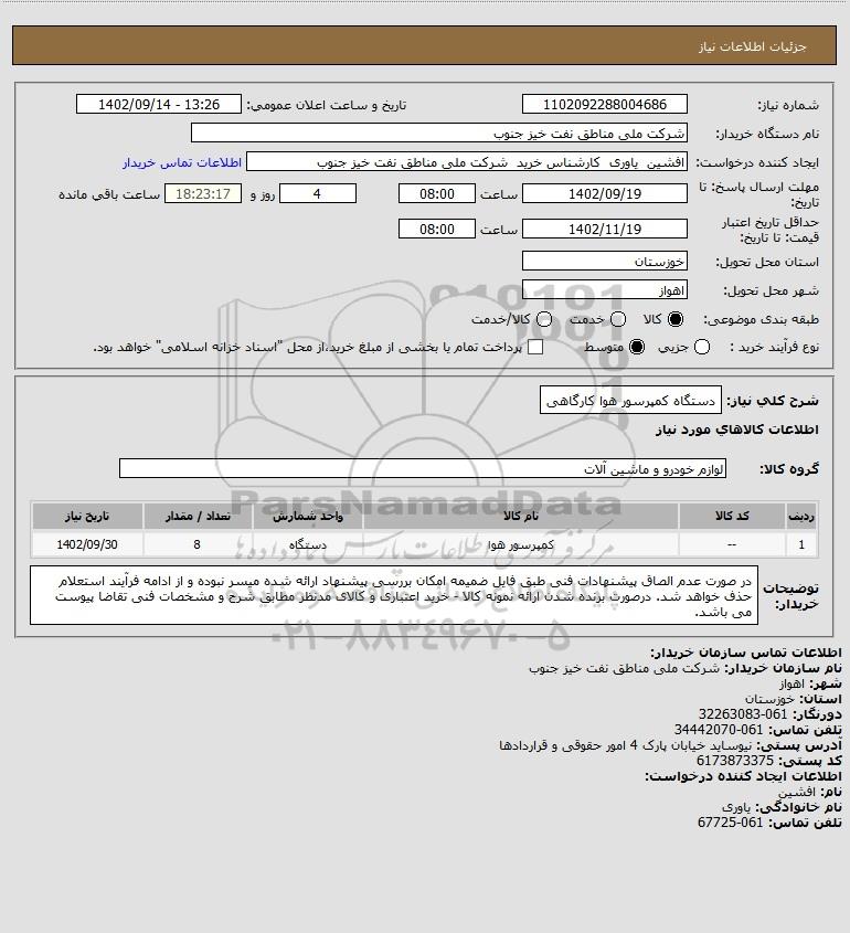 1 -- کمپرسور هوا دستگاه 8 1402/09/30