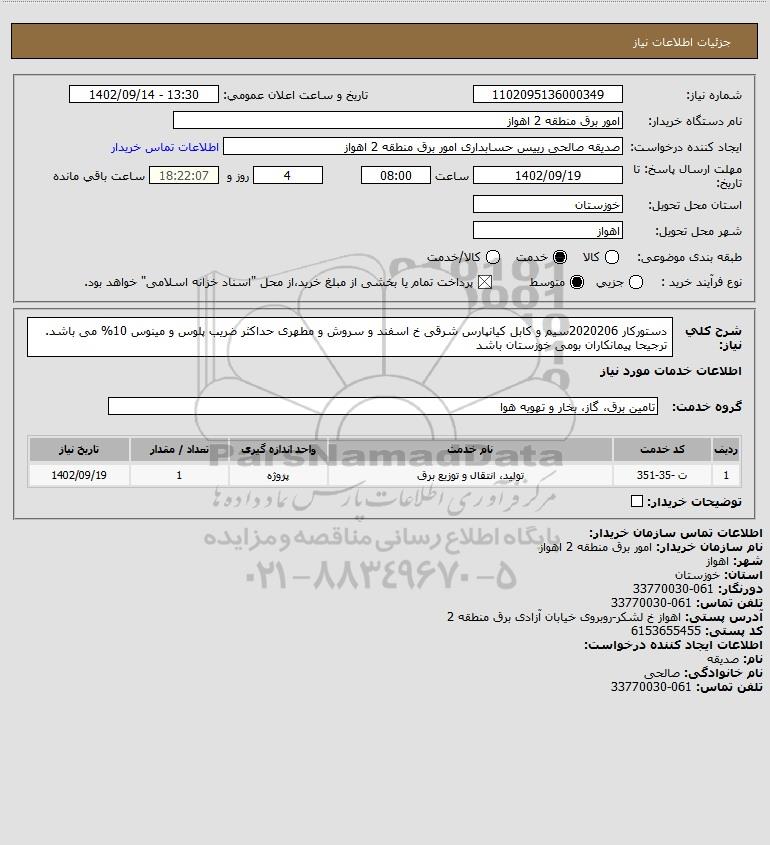 نام دستگاه خریدار:امور برق منطقه 2 اهواز