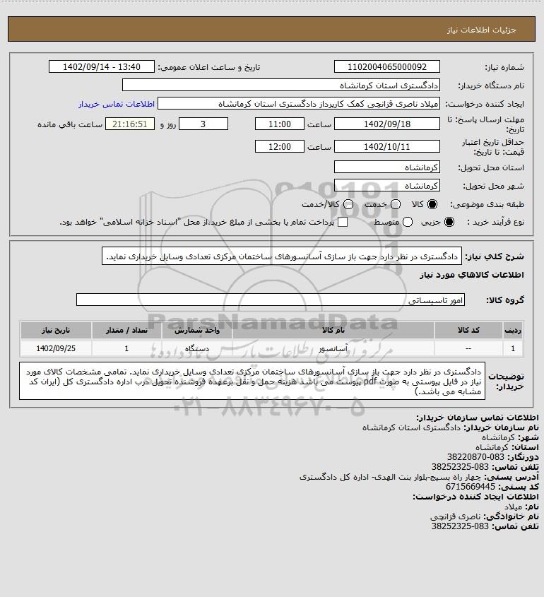 نام سازمان خریدار: دادگستری استان کرمانشاه
