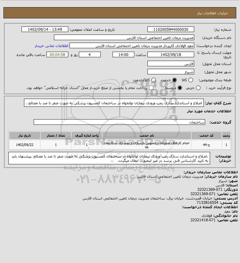 نام دستگاه خریدار:مدیریت درمان تامین اجتماعی استان فارس