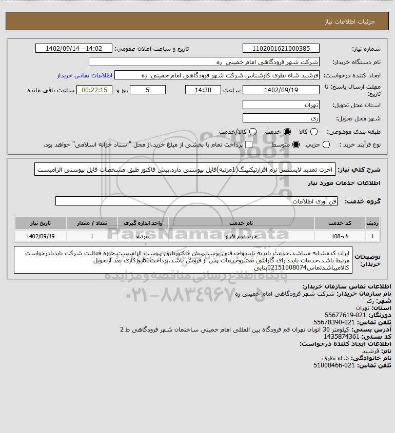 نام دستگاه خریدار:شرکت شهر فرودگاهی امام خمینی ره