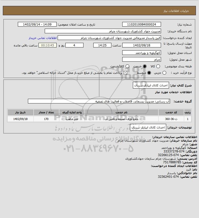 توضیحات خریدار:احداث کانال ابیاری سربال
