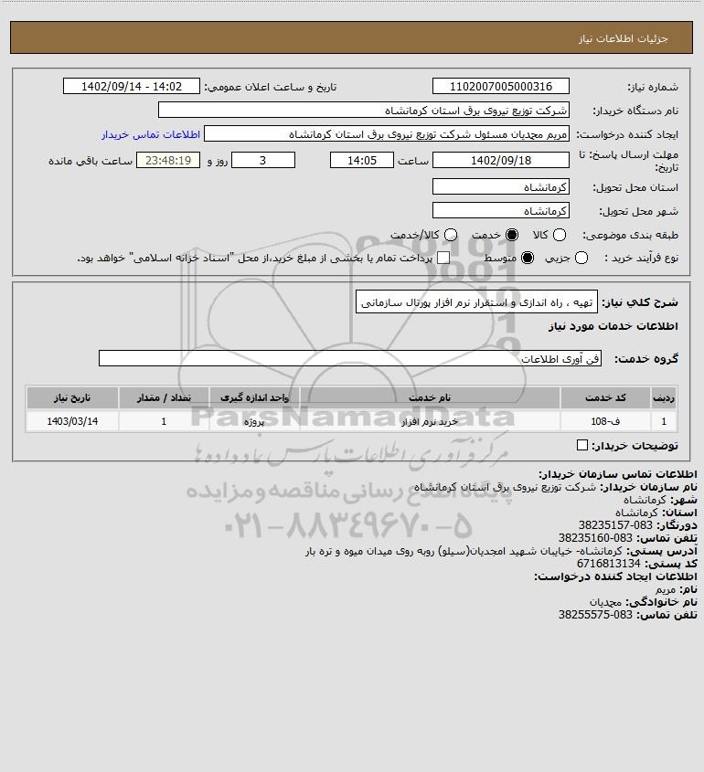 نام دستگاه خریدار:شرکت توزیع نیروی برق استان کرمانشاه