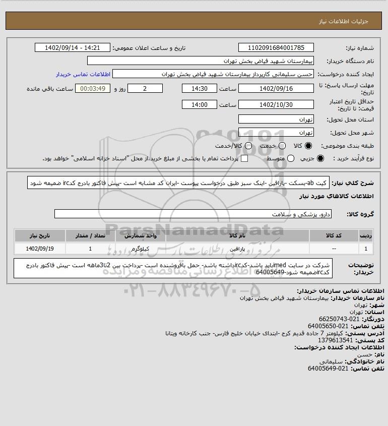 نام دستگاه خریدار:بیمارستان شهید فیاض بخش تهران