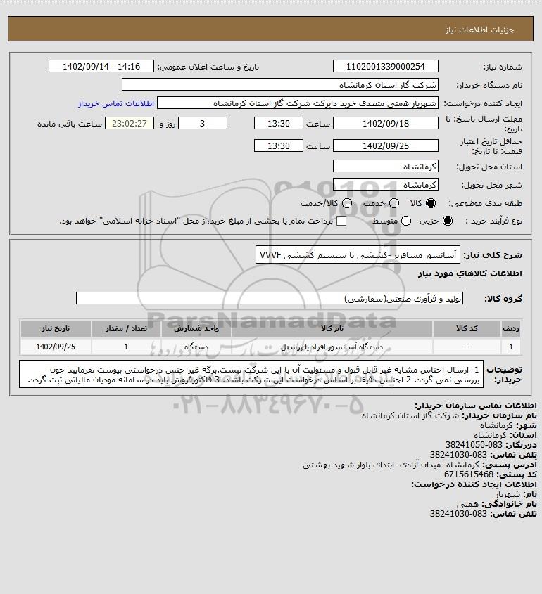 شرح کلی نیاز: آسانسور مسافربر -کششی با سیستم کششی VVVF