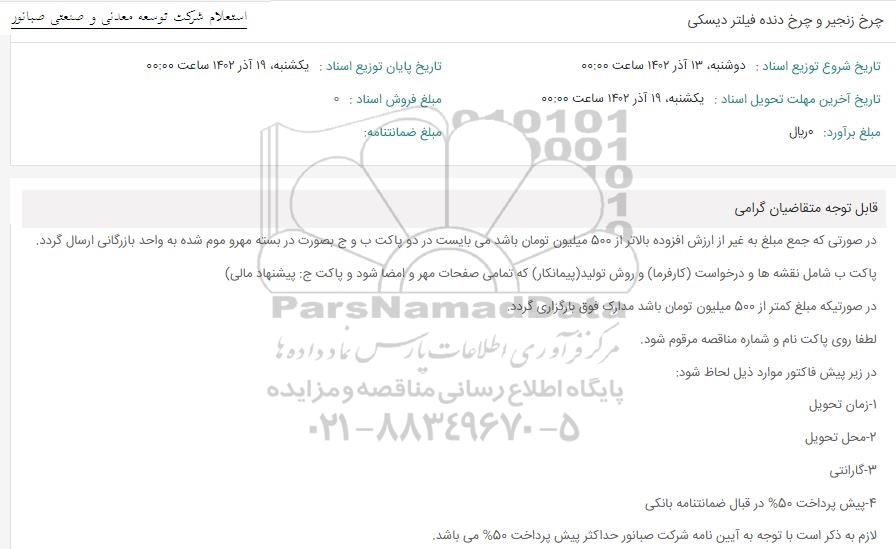 استعلام شرکت توسعه معدنی و صنعتی صبانور