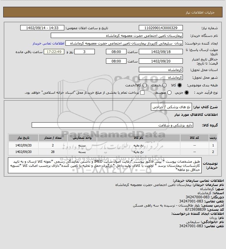 نام دستگاه خریدار:بیمارستان تامین اجتماعی حضرت معصومه کرمانشاه