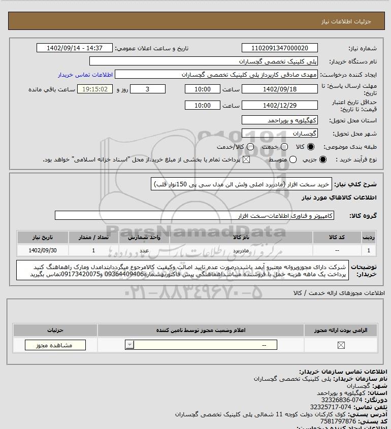 نام سازمان خریدار: پلی کلینیک تخصصی گچساران