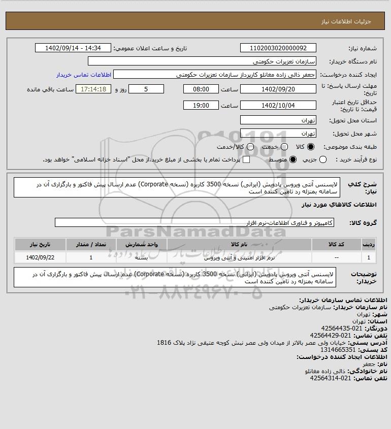نام دستگاه خریدار:سازمان تعزیرات حکومتی