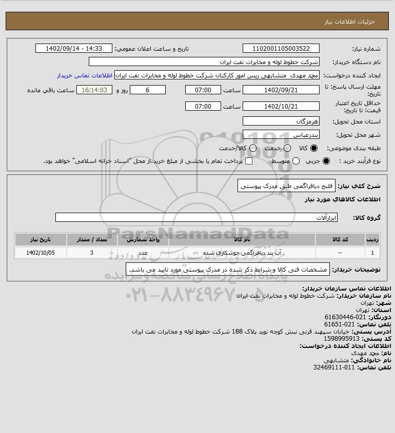 نام دستگاه خریدار:شرکت خطوط لوله و مخابرات نفت ایران
