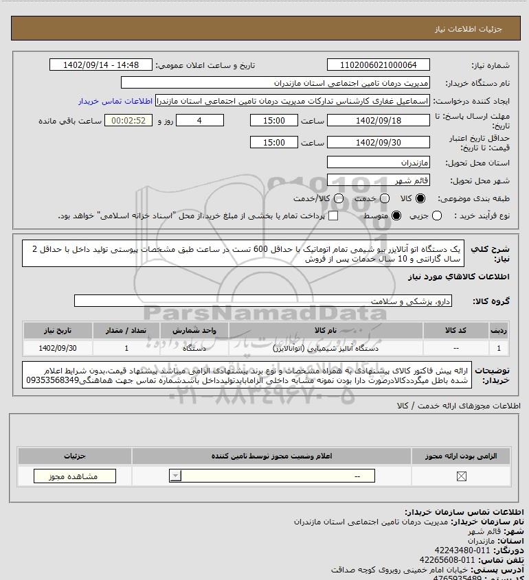 نام سازمان خریدار: مدیریت درمان تامین اجتماعی استان مازندران