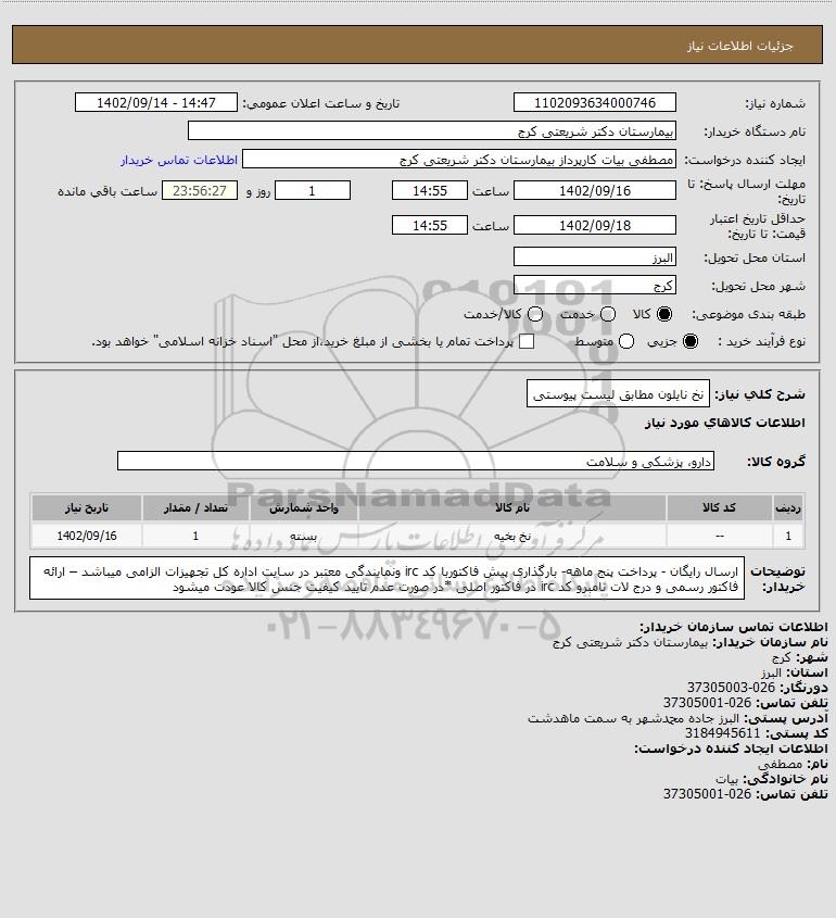 شرح کلی نیاز: نخ نایلون مطابق لیست پیوستی