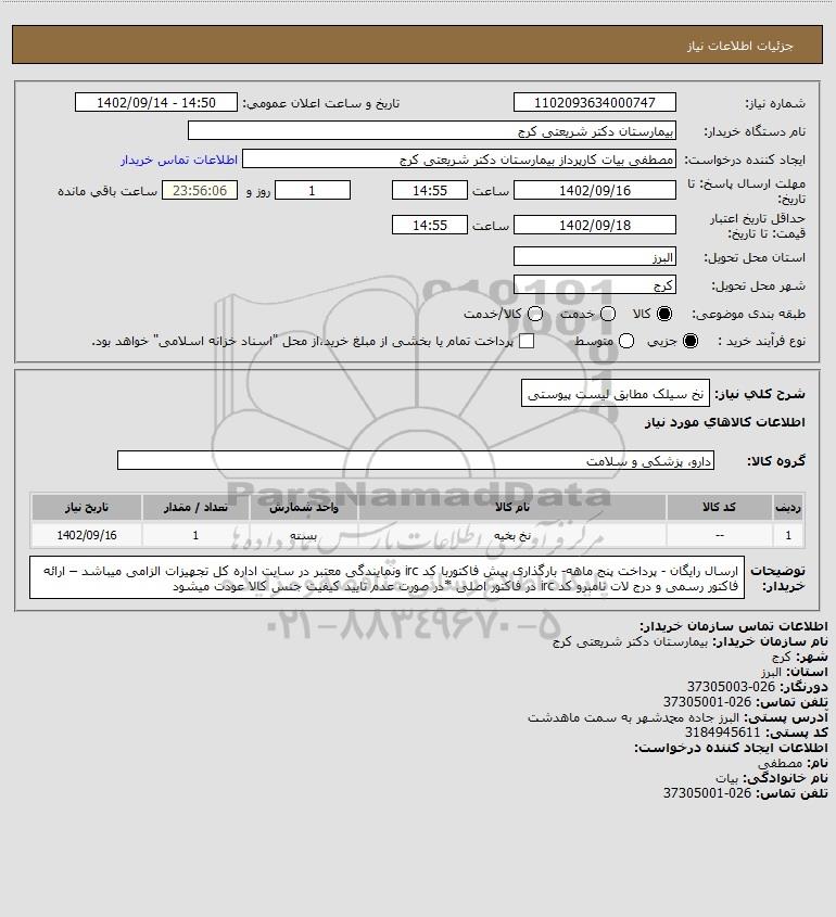 نام دستگاه خریدار:بیمارستان دکتر شریعتی کرج