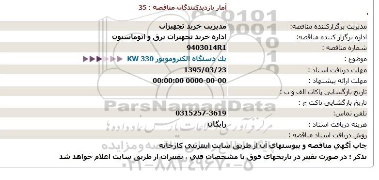 مناقصه یک دستگاه الکتروموتور 330kw, مناقصه , مناقصه یک دستگاه الکتروموتور 330kw