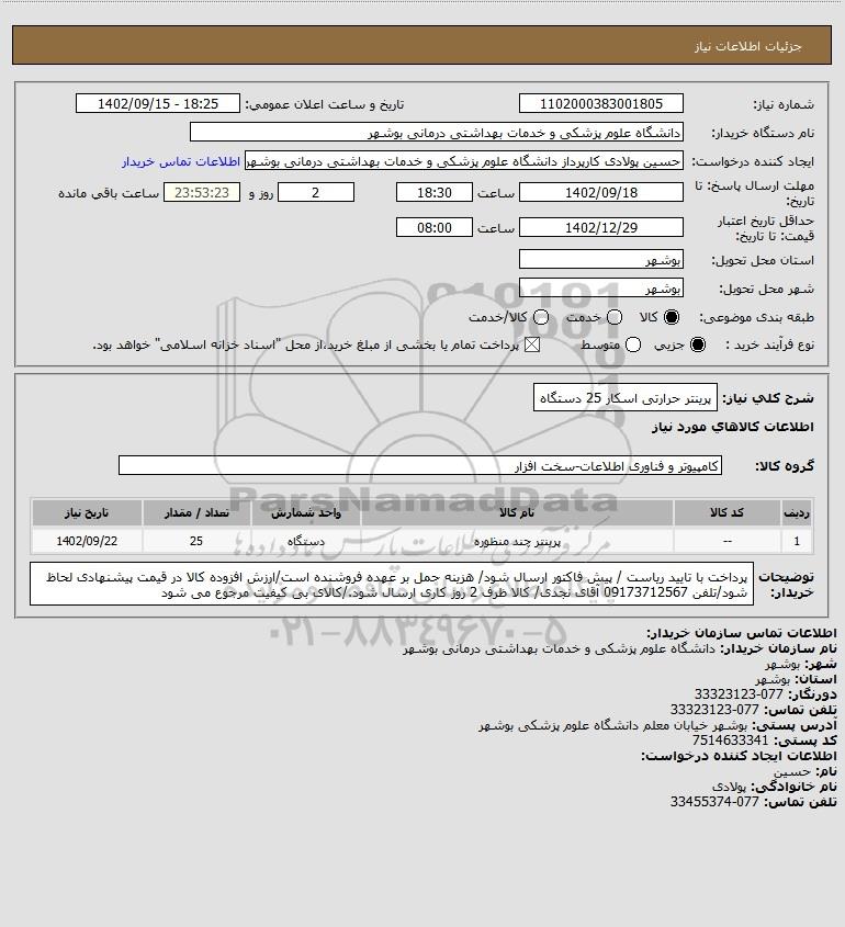 شرح کلی نیاز: پرینتر حرارتی اسکار 25 دستگاه