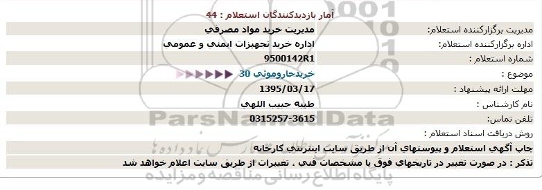 اداره برگزارکننده استعلام: اداره خرید تجهیزات ایمنی و عمومی