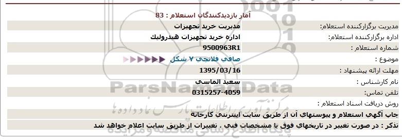 اداره برگزارکننده استعلام: اداره خرید تجهیزات هیدرولیک