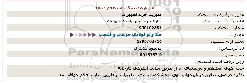 اداره برگزارکننده استعلام:  اداره خرید تجهیزات هیدرولیک