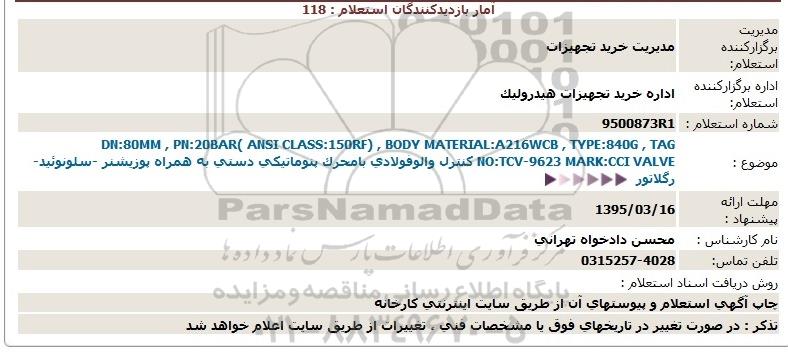 اداره برگزارکننده استعلام:     اداره خرید تجهیزات هیدرولیک
