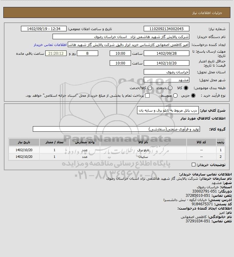 نام دستگاه خریدار:شرکت پالایش گاز شهید هاشمی نژاد استان خراسان رضوی
