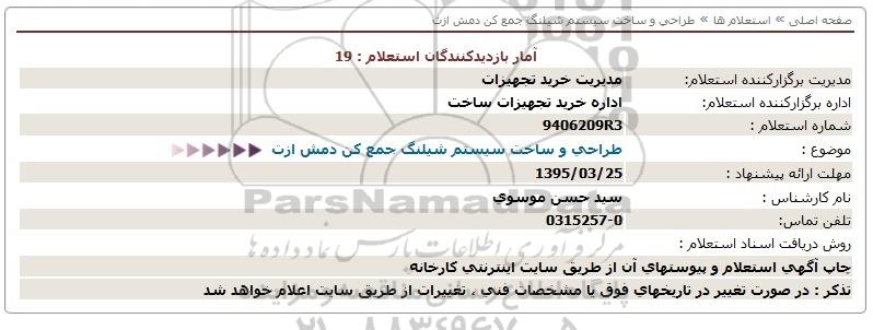 اداره برگزارکننده استعلام: اداره خرید تجهیزات ساخت