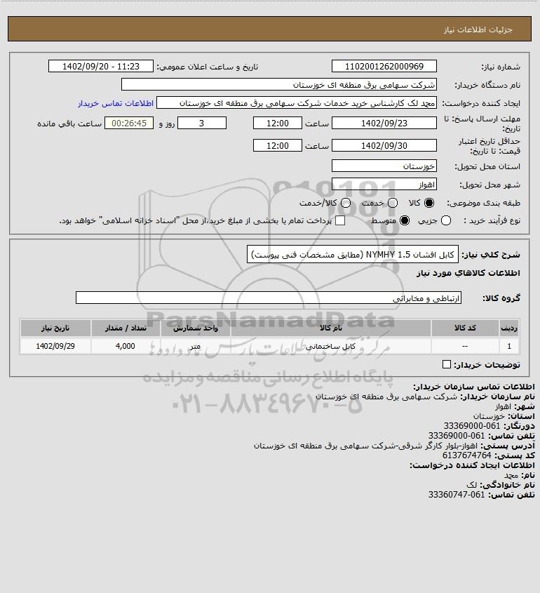 4 استعلام کابل ها ورساناها 9783136 1404/08/11 new special not payed خوزستان