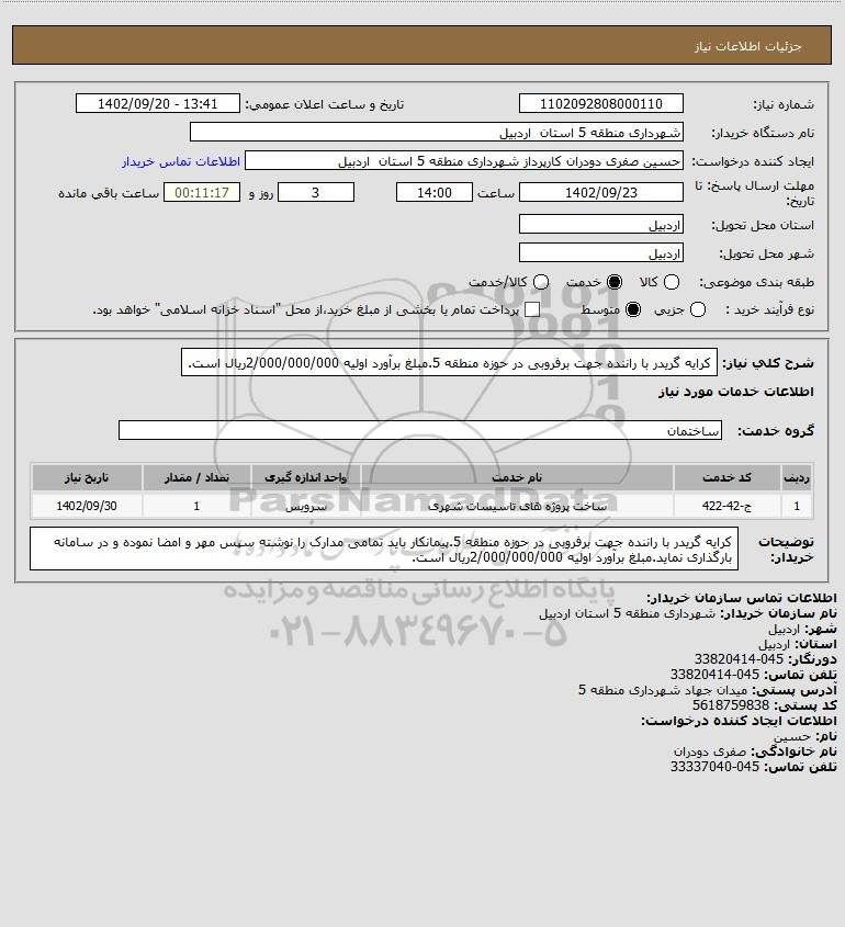 نام دستگاه خریدار:شهرداری منطقه 5 استان اردبیل