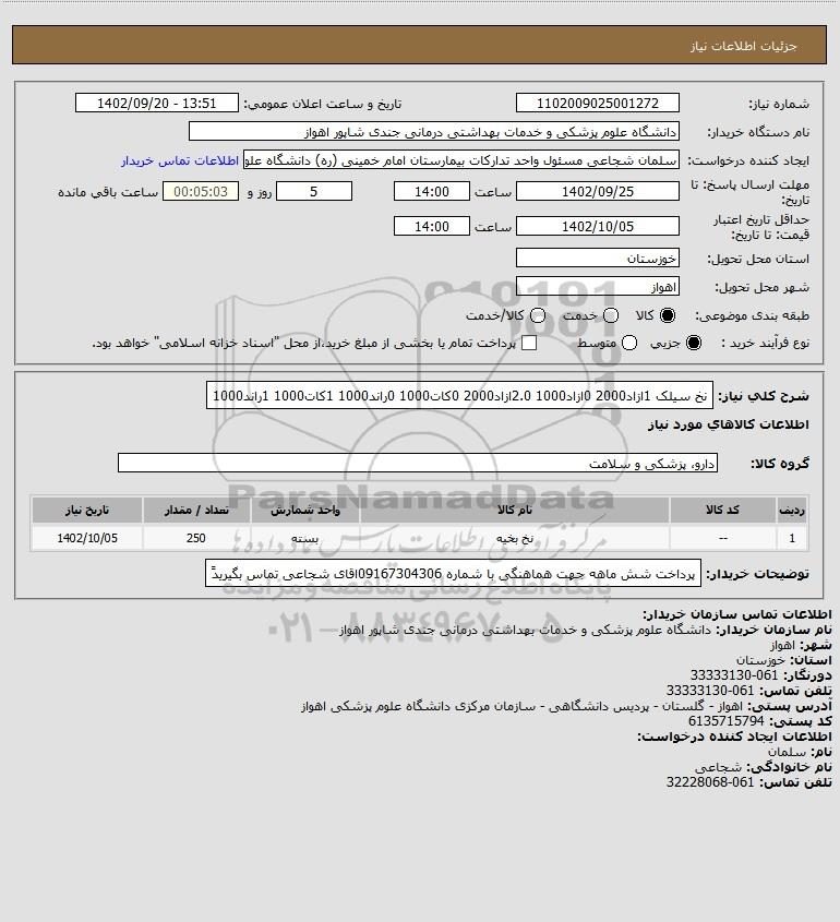 نام دستگاه خریدار:دانشگاه علوم پزشکی و خدمات بهداشتی درمانی جندی شاپور اهواز