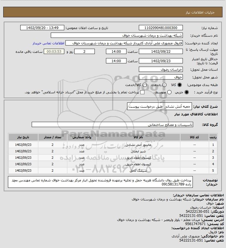 | 1 | -- | مانیتور آتش نشانی | عدد | 2 | 1402/09/23 |