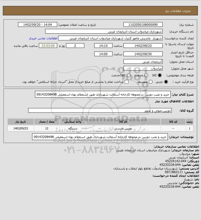 نام دستگاه خریدار:شهرداری میاندواب استان اذربایجان غربی