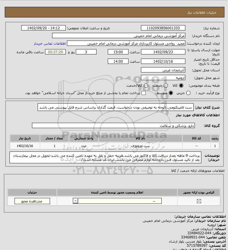 نام دستگاه خریدار:مرکز آموزشی درمانی امام خمینی