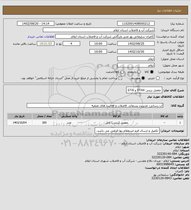 | 1 | -- | مفصل (رزینی) کابل | عدد | 200 | 1402/10/04 |