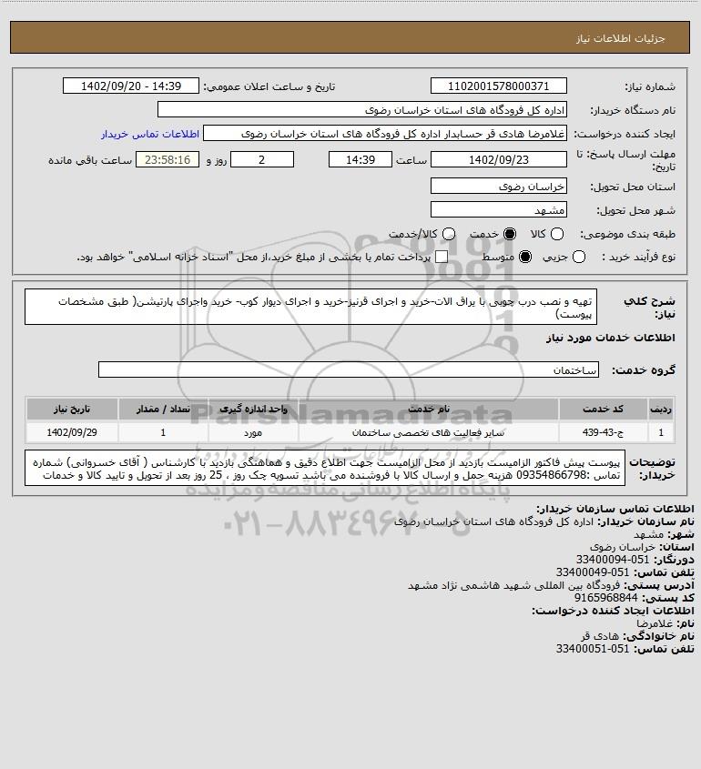 نام دستگاه خریدار:اداره کل فرودگاه های استان خراسان رضوی
