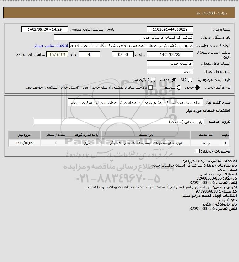 نام سازمان خریدار: شرکت گاز استان خراسان جنوبی